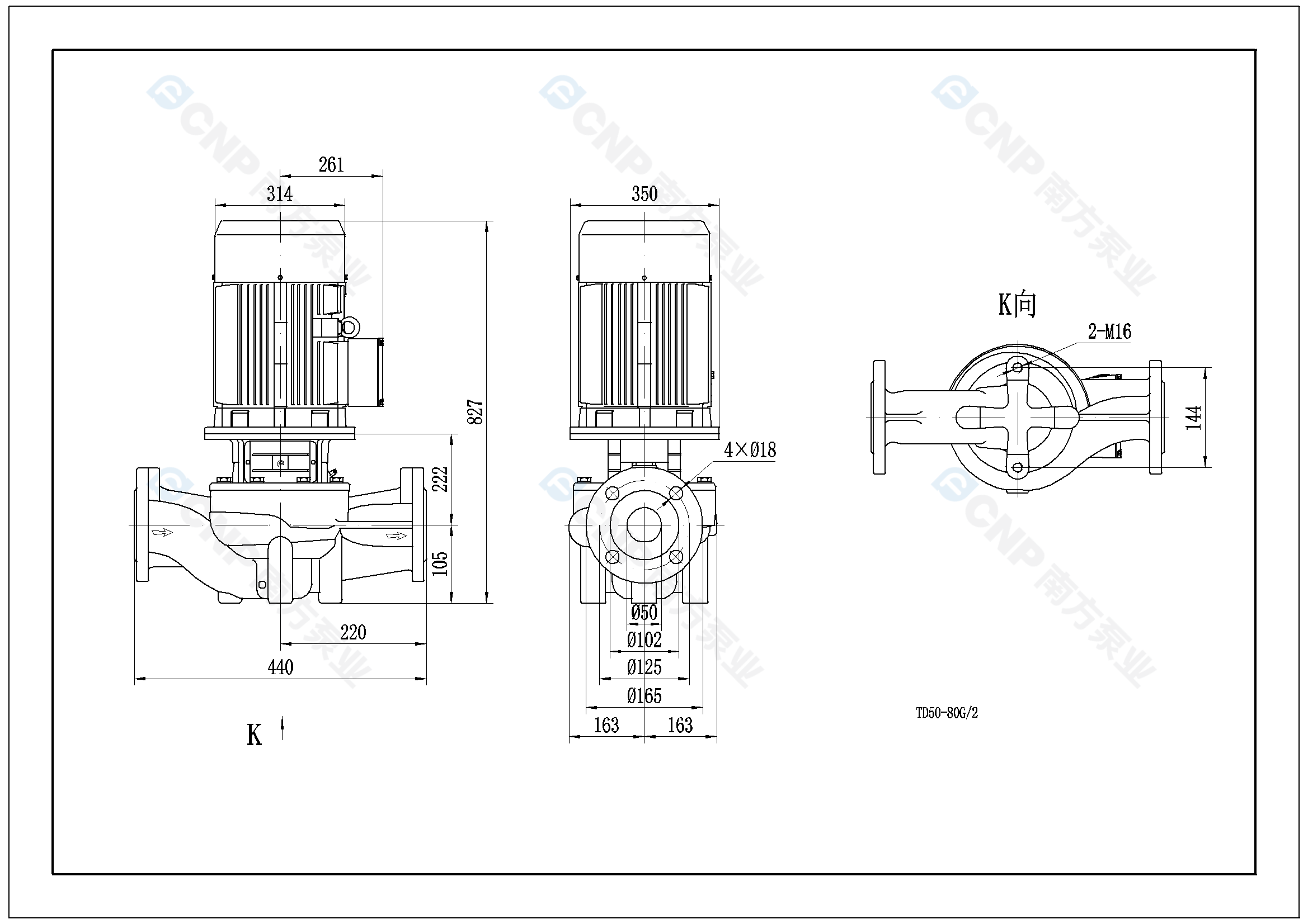需要南方泵TD50-80G/2外形CAD文件 請加銷售人員微信索取